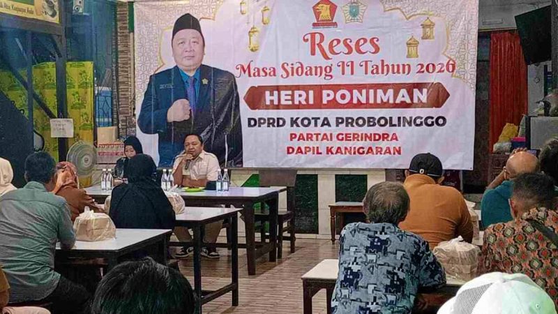 PROBOLINGGO, suarabayuangga.com – Sekretaris Komisi III DPRD Kota Probolinggo, Heri Poniman, kembali turun langsung menemui warga dalam agenda Reses Masa Sidang II Tahun 2026. Anggota DPRD dari Partai Gerindra ini fokus mendengarkan keluhan dan usulan warga terkait pembangunan infrastruktur di wilayah Kecamatan Kanigaran, Kamis (26/02/2026).